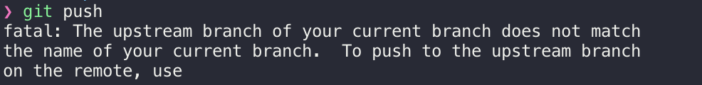 그 이유는 로컬 저장소의 트래킹 브랜치와 원격 저장소의 브랜치 이름이 서로 다르기 때문입니다. 그냥... git 이 싫어해요! 😶