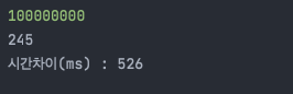 그래서 n을 100000000으로 놓고 두 방식의 실행시간을 측정하였다.