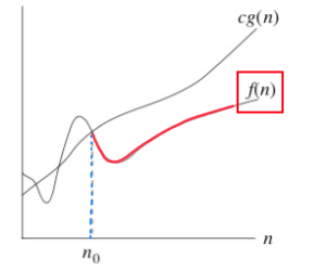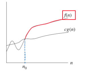 이를 만족하는 경우, $g(n)$ 은 $f(n)$ 에 대하여 **점근적 상한(asymptotic upper bound)**이다.