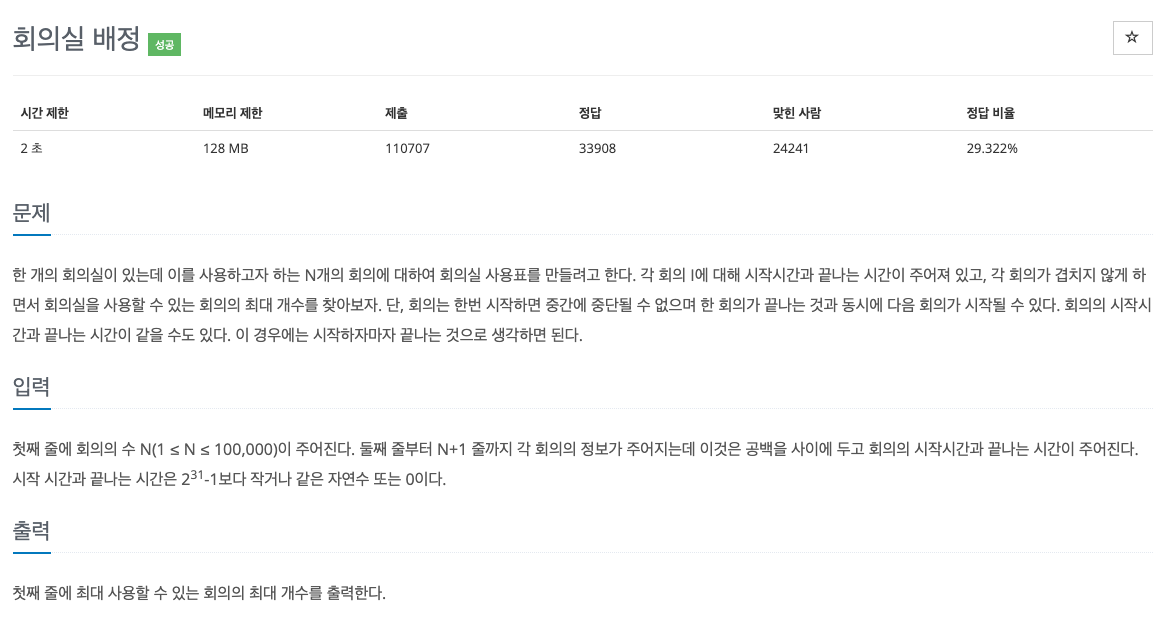 그래서 endTime이 같을 경우에는 startTime에 맞춰 정렬하도록 했다.