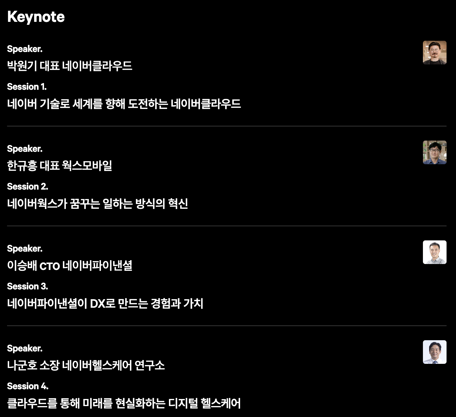 그래도 특히나 기대되는 세션은 "네이버웍스가 꿈꾸는 일하는 방식의 혁신" 과 "클라우드를 통해 미래를 현실화하는 디지털 헬스케어" 이다.